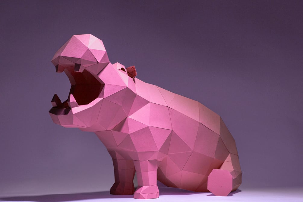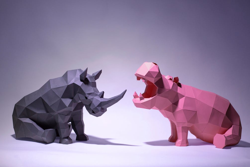 Rhino Sit and Hippopotamus Sit, Paper Craft, Digital Template, Origami, PDF Download DIY, Low Poly, Trophy, Sculpture, Rhino, Hippopo Model