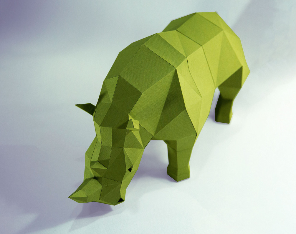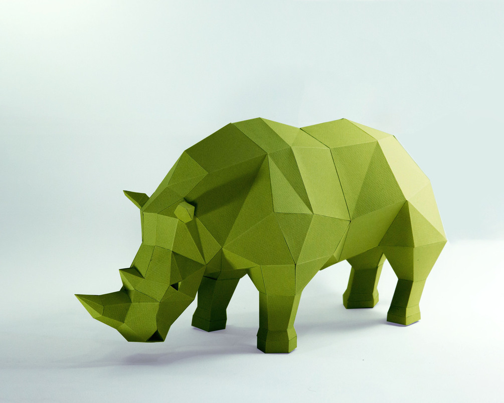 Rhino Model, Rhino Sculpture, Rhino Digital Template, Rhinoceros Paper, Rhino Low poly, Papercraft, Paper Model
