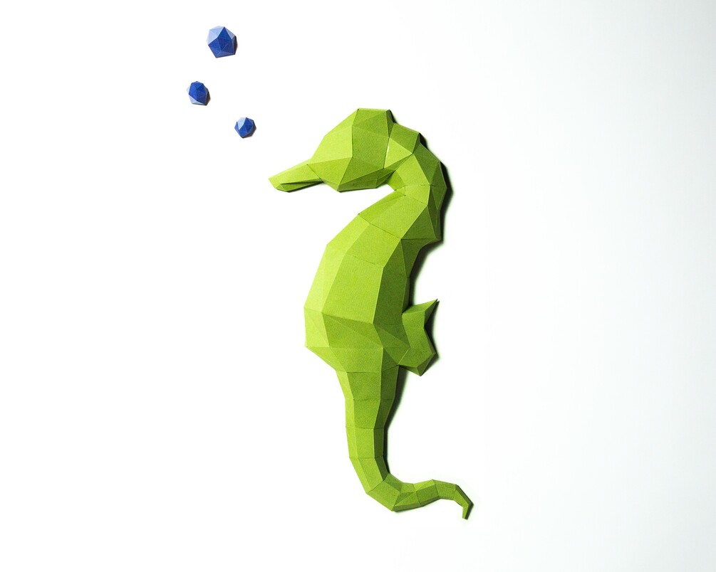 Seahorse wall decor, Seahorse Model, Seahorse paper, Seahorse paper ,Seahorse low poly , papercraft, DIY, trophy, papermodel, Sculpture